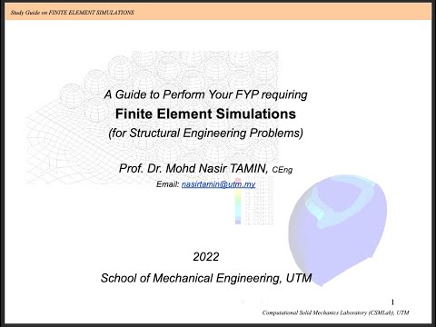Finite element simulations for structural engineering students by Prof. Dr. Mohd Nasir TaminThis video is to help students and instructors with a systematic process in completing final year project (FYP) that requires finite element (FE) simulation. The contents enable students to grasp adequate concepts and understanding on how the mechanics of materials and the materials engineering (or science) aspects are simplified in the FE simulation and rationalized back in the FE results of a specific engineering problem.